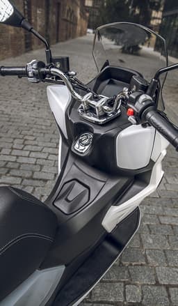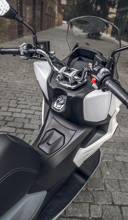 Incluye de serie pantalla TFT a color con mirroring, iluminación Full LED, sistema keyless, toma USB, ABS, baúl trasero (top case) y espacio bajo el asiento para un casco integral, un equipamiento muy completo para su precio.