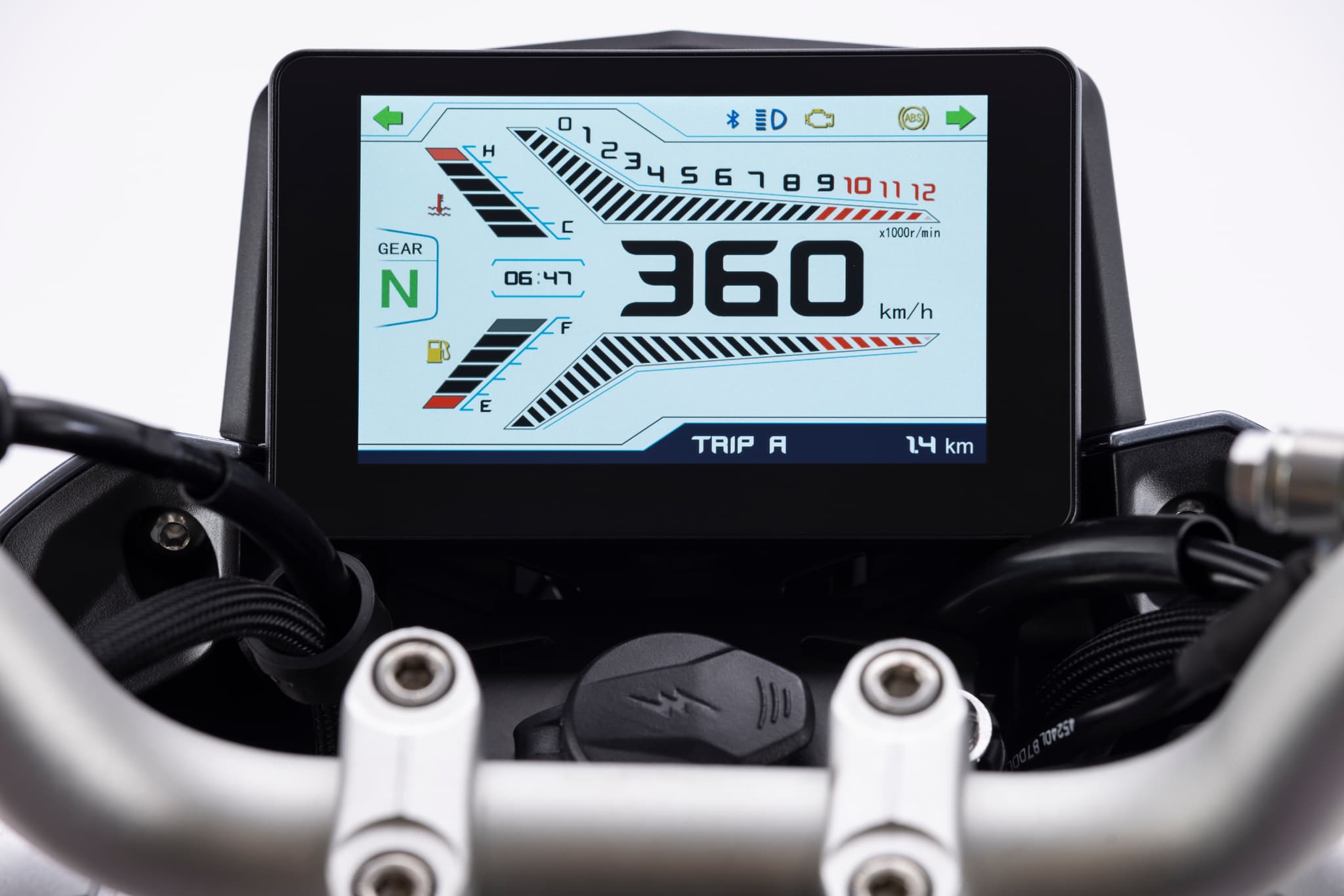 Dashboard con pantalla TFT 5" que proporciona todos los datos relevantes de forma clara, precisa y muy intuitiva. Conectado por bluetooth que te permite duplicar la pantalla del móvil para GPS. La pantalla con efecto day& night te proporciona todos los datos relevantes de forma clara, precisa y muy intuitiva, tando de día como de noche.
