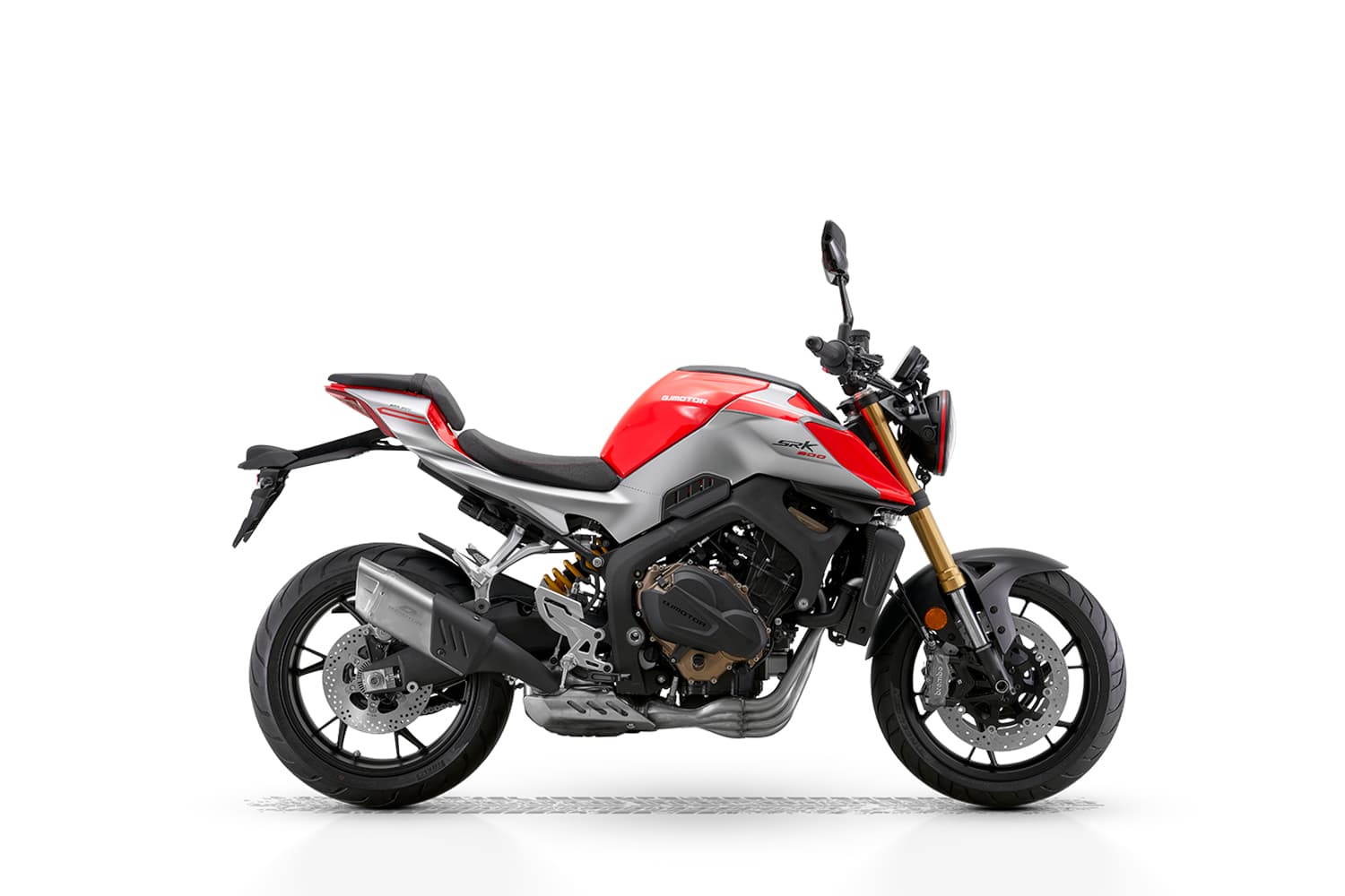 Equipada con un motor tetracilíndrico en línea de 778 cc, la SRK 800 desarrolla alrededor de 95 CV, ofreciendo una entrega progresiva y emocionante en la zona alta del cuentavueltas. Su chasis perimetral, suspensiones regulables y sistema de frenos con ABS garantizan estabilidad y precisión, mientras que la iluminación Full LED, la pantalla TFT y las ayudas electrónicas elevan su nivel tecnológico dentro del segmento naked.