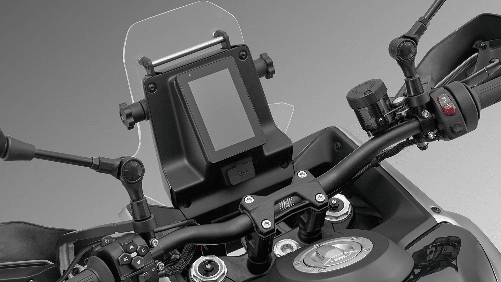 El TCS (Traction Control System) evita deslizamientos de la rueda trasera al arrancar, al acelerar o al hacer giros en firme con menos adherencia.