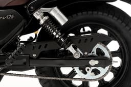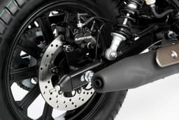 Con doble amortiguador de 60 mm de recorrido regulable en precarga en tren trasero y horquilla telescópica convencional de 118 mm de recorrido en tren delantero.