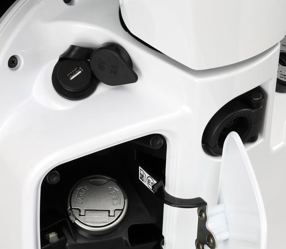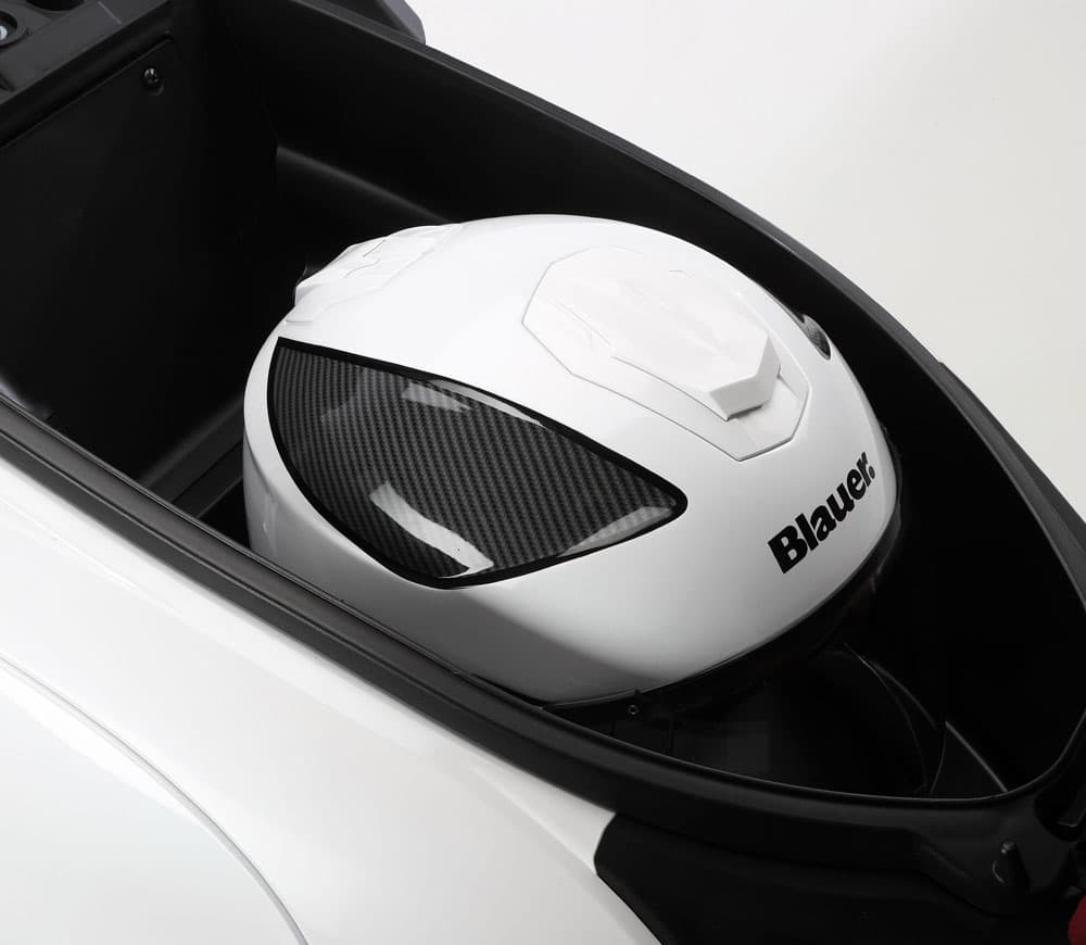 Espacio bajo el asiento para un casco tipo Jet.