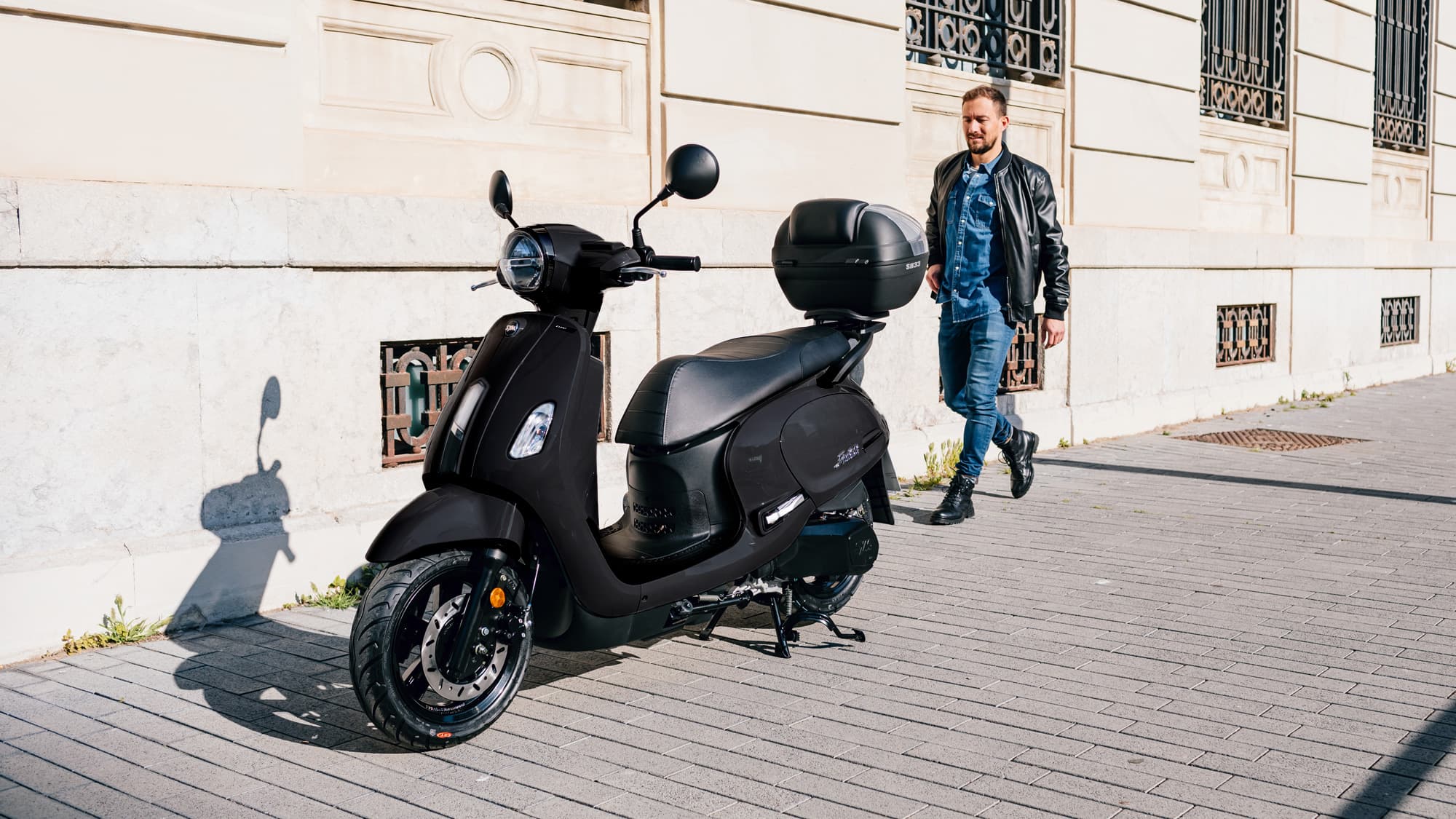 En cuanto a su diseño, el SYM Fiddle 50 se inspira en los scooters clásicos de los años 50 y 60, con líneas suaves y curvas retro que le dan un aspecto nostálgico y encantador. Cuenta con detalles estilísticos cuidados, como un faro redondo, un manillar cromado y una combinación de colores vibrantes que le dan un toque de personalidad única.