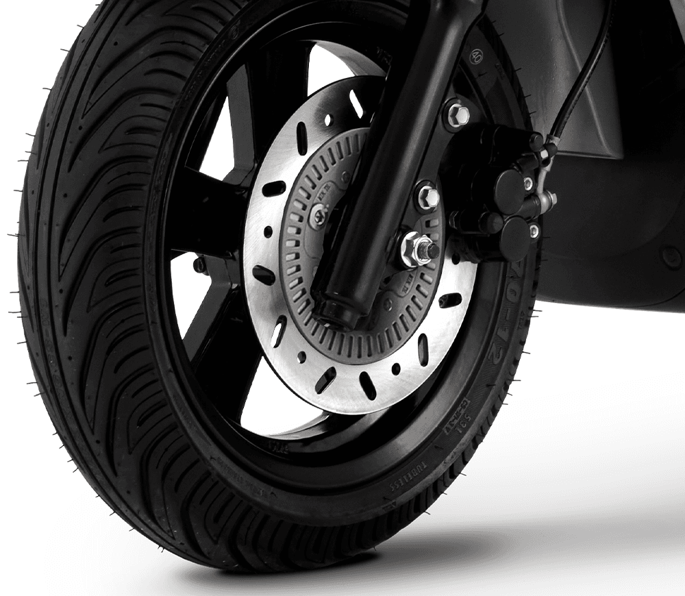De doble canal. Aumenta la seguridad del scooter al prevenir el bloqueo de las ruedas durante la frenada, ofreciendo mayor estabilidad y control en todo momento.