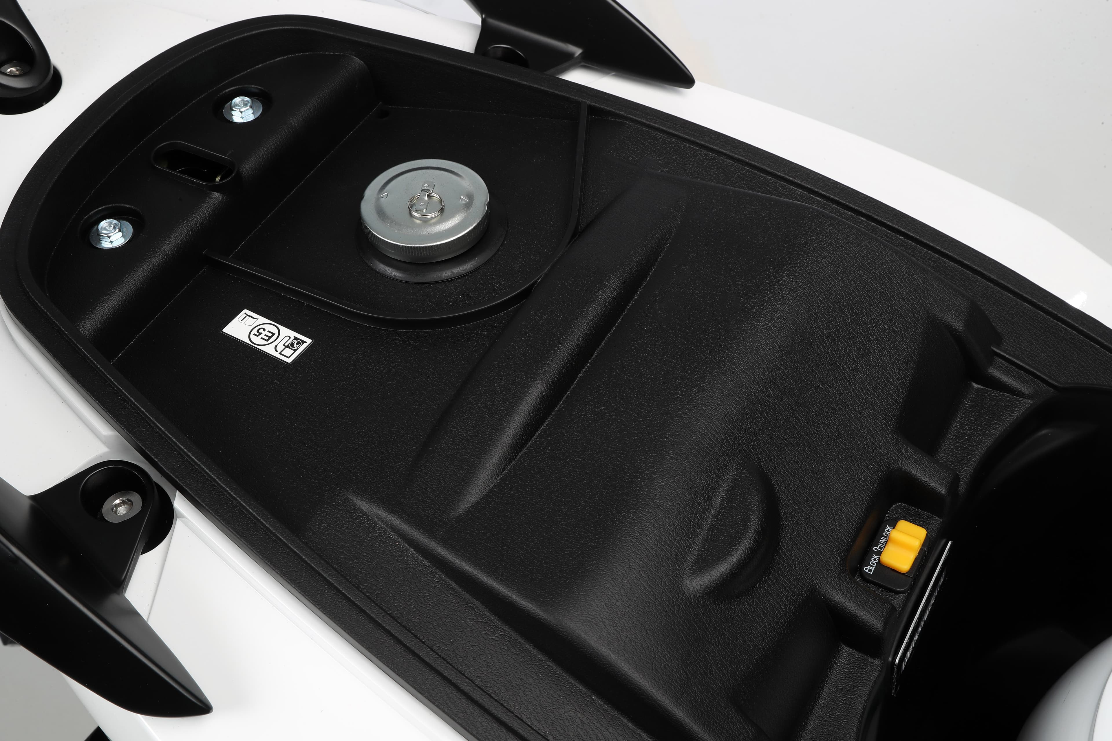Espacio bajo el asiento para un casco integral.